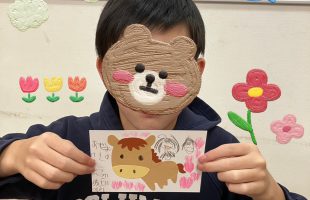 年賀状を作りました✨メッセージ、お花やにんじんのイラストを描いたりお馬さんの顔…