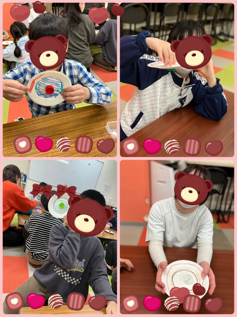 Home 未分類 紙皿工作🎵 紙皿工作🎵 2026.01.26 未分類 紙皿工作をしました!紙皿に色を塗ったり、イラストを描いたりした後はキャップをつけて駒の完成✨完成した後は、回して楽しく遊びました(*^^*) Tweet Share +1 Hatena Pocket RSS feedly Pin it コメントは利用できません。