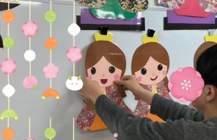 ひな祭りをしました🌸みんなで、ひな人形たちを貼りました🎎ひな祭りの歌を歌った後…